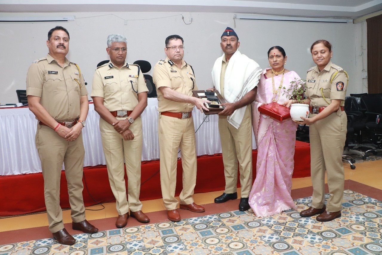 पोलीस अधिकारी / अंमलदार नाव श्री. दिपक आनंदराव कांबळे पोलीस उपनिरीक्षक / अतिक्रमण विभाग श्री. सुबराव भिमराव गवारे पोलीस उपनिरीक्षक / एसीपी पिंपरी विभाग श्री. पांडुरंग विठ्ठल सोनवणे श्रेणी पोलीस उपनिरीक्षक / चिखली पोलीस स्टेशन श्री. निवृत्ती चिमाजी रेंगडे श्रेणी पोलीस उपनिरीक्षक / वाहतुक विभाग श्री. संजय गणपत घाडगे श्रेणी पोलीस उपनिरीक्षक / पिंपरी पोलीस स्टेशन श्री. मारुती बबन पशाले श्रेणी पोलीस उपनिरीक्षक / पिंपरी पोलीस स्टेशन श्री. नवनाथ रावजी पिंगळे श्रेणी पोलीस उपनिरीक्षक / वाहतुक विभाग श्रीमती. रागिणी संजय खांडेकर श्रेणी पोलीस उपनिरीक्षक / पोलीस मुख्यालय श्री. उत्तम विनायक तरंगे सहायक पोलीस उपनिरीक्षक / संत तुकाराम नगर पोलीस स्टेशन श्री. दादा शिवराम खंडाळे सहायक पोलीस उपनिरीक्षक / चिखली पोलीस स्टेशन श्री. मोहन एकनाथ चोरमले सहायक पोलीस उपनिरीक्षक / आर्थिक गुन्हे शाखा श्री. पोपट मारुती भोसुरे पोलीस शिपाई ब.नं.२०१६ / वाहतुक विभाग श्री. माणिकराव शंकर ठाकरे पोलीस शिपाई ब.नं.२३२१ / पोलीस मुख्यालय सदर आयोजीत कार्यक्रमात सह पोलीस आयुक्त, मा. श्री. शशिकांत महावरकर, अपर पोलीस आयुक्त मा. श्री. सारंग आवाड, तसेच पोलीस उपआयुक्त, श्रीमती श्वेता खेडकर, श्री. विवेक पाटील, पिंपरी चिंचवड यांनी त्यांचे शुभहस्ते नियत वयोमानाने सेवानिवृत्त झालेले पोलीस अधिकारी व अंमलदार यांचा कुटुंबियासह शाल, श्रीफळ, पुष्पगुच्छ, सेवानिवृत्त प्रमाणपत्र, ओळखपत्र, शुभेच्छापत्र, मोमेटो, झाडाचे रोपटे, भेटवस्तु (साडी) देवुन सत्कार केला तसेच त्यांचे भावी आयुष्याकरिता व आरोग्या करिता शुभेच्छा दिल्या. वरिल कार्यक्रमास सह पोलीस आयुक्त, मा. श्री. शशिकांत महावरकर, अपर पोलीस आयुक्त, मा. श्री. सारंग आवाड, तसेच पोलीस उपआयुक्त, श्रीमती श्वेता खेडकर, श्री. विवेक पाटील, पोलीस निरीक्षक श्री. नितीन लांडगे, राखीव पोलीस निरीक्षक श्री. महेश साळवी, पोलीस आयुक्तालय पिंपरी चिंचवड मधील कर्मचारी वृदं व सेवानिवृत्त झालेले अधिकारी व अंमलदार यांचे नातेवाईक उपस्थित होते.