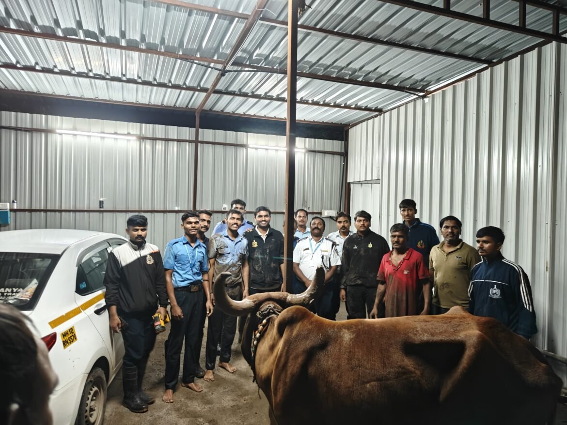 पिंपरी, : रावेत गावठाण बीआरटीजवळील शाळेसमोरील कन्स्ट्रक्शन साईटवरील खोल खड्ड्यात पडलेल्या गायीला सुखरूप बाहेर काढून पिंपरी चिंचवड महापालिकेच्या अग्निशामक जवानांनी मुक्या जीवाला जीवनदान दिले आहे. ही कामगिरी पिंपरी, थेरगाव व प्राधिकरण अग्निशमन केंद्रांच्या बचाव पथकाने पार पाडली. रावेत गावठाण बीआरटीजवळील शाळेसमोरील कन्स्ट्रक्शन साईटवरील खोल खड्ड्यात एक गाय पडली आहे, अशी माहिती मिळताच पिंपरी, थेरगाव व प्राधिकरण अग्निशमन केंद्रांमधून बचाव पथक तत्काळ घटनास्थळी रवाना करण्यात आले. पथकाने घटनास्थळी पोहोचून पाहणी केली असता, सदर खड्डा अंदाजे ५०x५० फूट लांबीचा आणि ३५ ते ४० फूट खोल होता. पावसामुळे संपूर्ण भाग चिखलमय झालेला होता. अशा कठीण परिस्थितीत खड्ड्याच्या निसरड्या व चिखलयुक्त परिसरामुळे क्रेन थेट खड्ड्याजवळ नेणे शक्य नव्हते. मात्र क्रेनच्या बूमचा वापर करून व होज आणि दोराच्या साहाय्याने अग्निशामक जवानांनी गायीला दोन बेल्ट लावले. साधारण अर्धा तासाच्या प्रयत्नांनंतर गायीला सुरक्षितरित्या खड्ड्यातून बाहेर काढण्यात आले. सहआयुक्त तथा अग्निशमन विभागप्रमुख मनोज लोणकर यांच्या मार्गदर्शनाखाली ही कामगिरी अग्निशमन अधिकारी गौतम इंगवले व लिडिंग फायरमन सारंग मंगळूरकर, फायरमन काशिनाथ ठाकरे, सौरव इंगवले, अजय कटारनवरे, विकास पांढरे, विवेक वाघमोडे, शुभम जगताप आणि ऋषिकेश सावंत यांनी केली. …… कोट आमचे जवान हे आमच्या विभागाचे खऱ्या अर्थाने सामर्थ्य आहेत. अशा मोहिमा केवळ प्रशिक्षणाने नव्हे, तर मनातली दया आणि बांधिलकीने पूर्ण होतात. एखाद्या माणसाच्या जीवाबाबत जितकी तत्परता आमचे जवान दाखवतात, तितकीच संवेदना मुक्या जीवांबाबतही दाखवणे यातूनच अग्निशमन विभागातील जवानांचा सेवाभाव दिसून येतो. — मनोज लोणकर, सहआयुक्त तथा अग्निशमन विभागप्रमुख, पिंपरी चिंचवड महापालिका ….. कोट ही कामगिरी फक्त तांत्रिक कौशल्याने नाही, तर जवानांच्या संवेदनशीलतेने व सेवाभावाने शक्य झाली. ४० फूट खोल खड्डा, अंधार आणि चिखल अशा अत्यंत कठीण परिस्थितीत देखील जवानांनी हार न मानता प्रयत्न सुरू ठेवले. शहरातील नागरिकांसोबतच मुक्या जीवांचं रक्षण करणं, ही आमची जबाबदारीच नव्हे तर आमचं कर्तव्य आहे. — ऋषिकांत चिपाडे, उपअग्निशमन अधिकारी, पिंपरी चिंचवड महापालिका